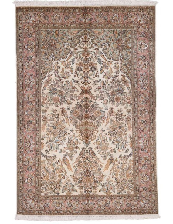 The rugs of the Kashmir Valley will enchant you with their fantastic colours and silky smooth surface. These carpets can have a cassette pattern (garden of paradise) or a central medalion.