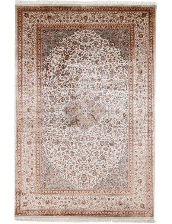 The rugs of the Kashmir Valley will enchant you with their fantastic colours and silky smooth surface. These carpets can have a cassette pattern (garden of paradise) or a central medalion.