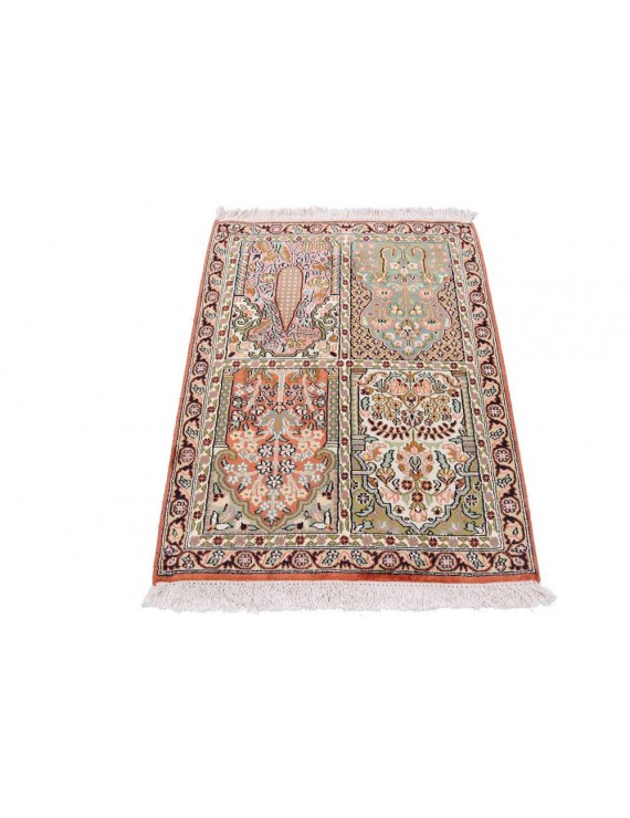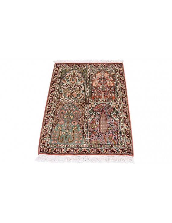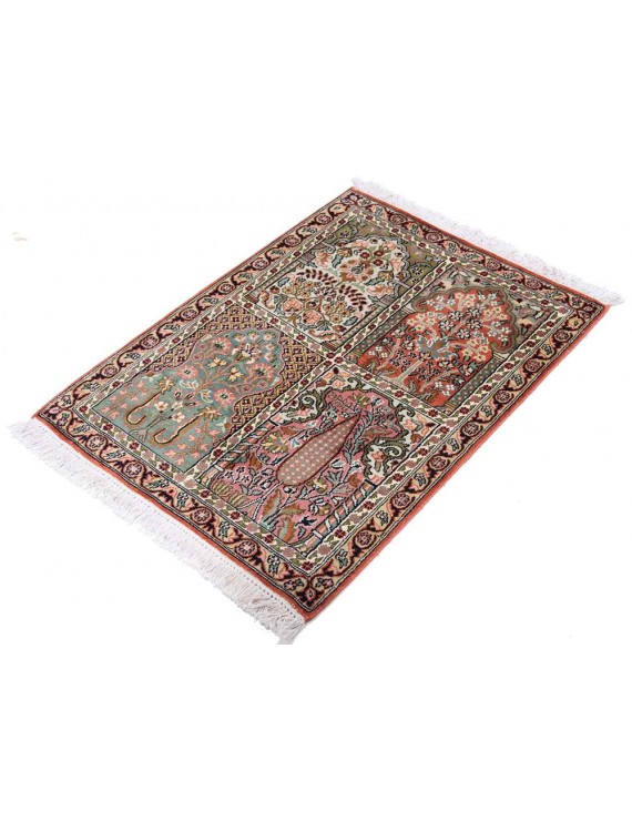 The rugs of the Kashmir Valley will enchant you with their fantastic colours and silky smooth surface. These carpets can have a cassette pattern (garden of paradise) or a central medalion.